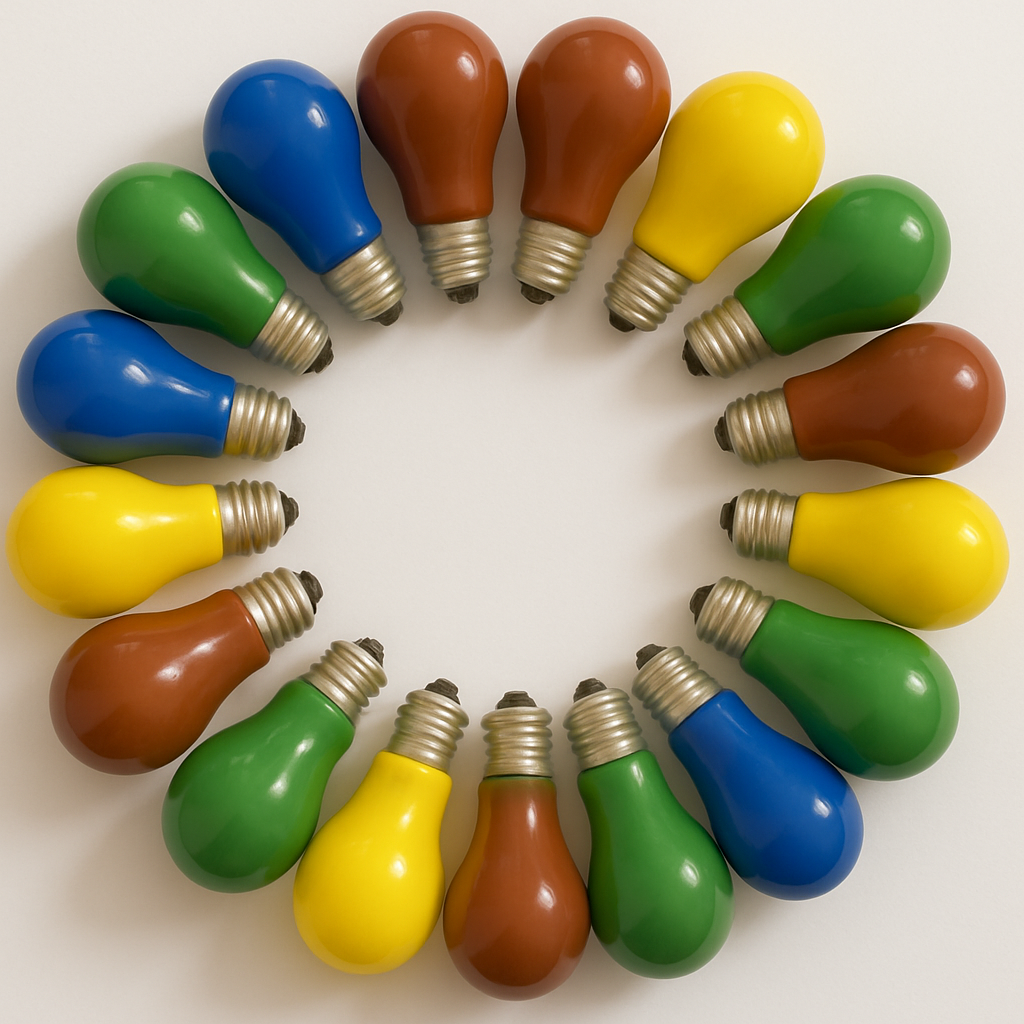 ✔️ Farben: Rot 🔴, Gelb 🟡, Grün 🟢, Blau 🔵, Orange 🟠