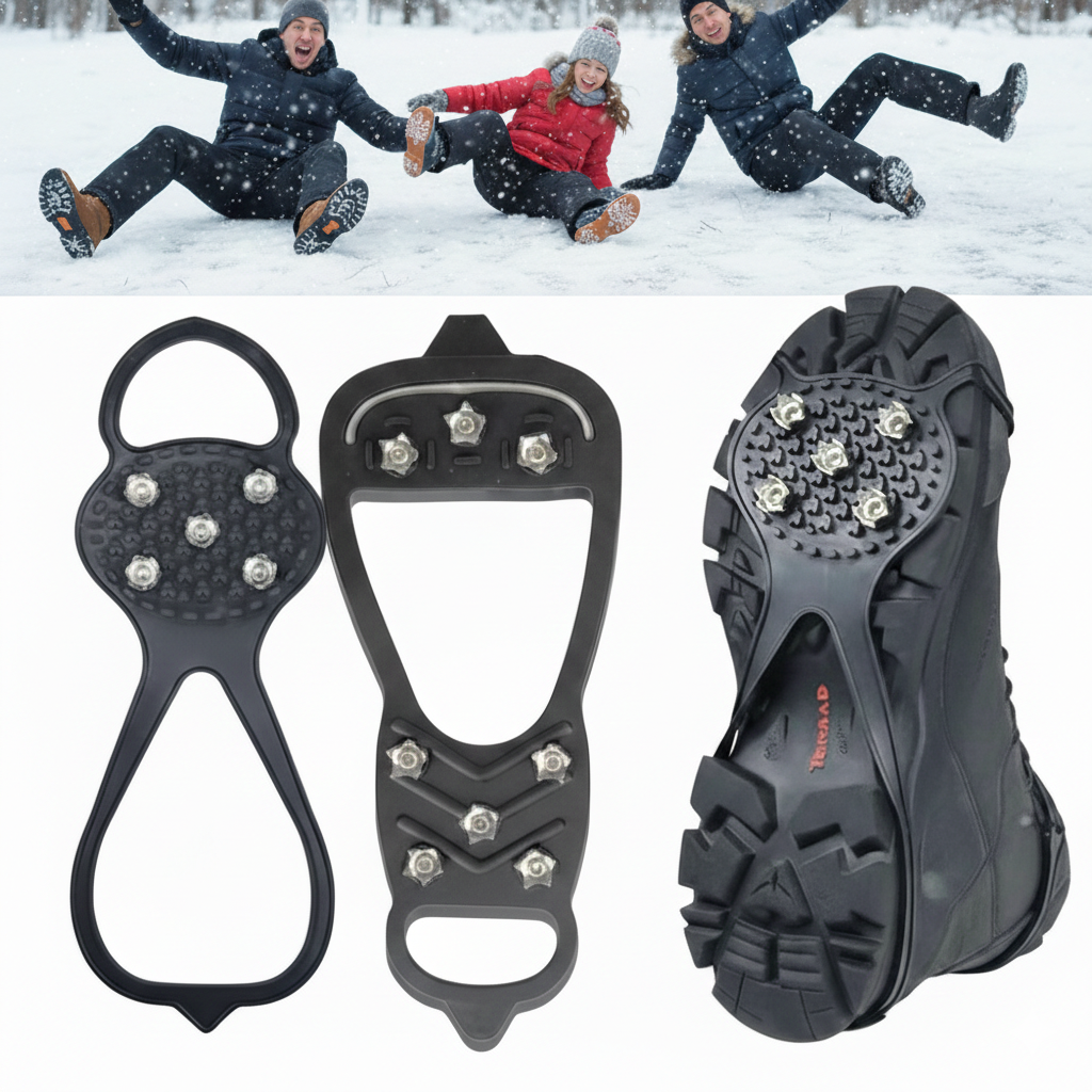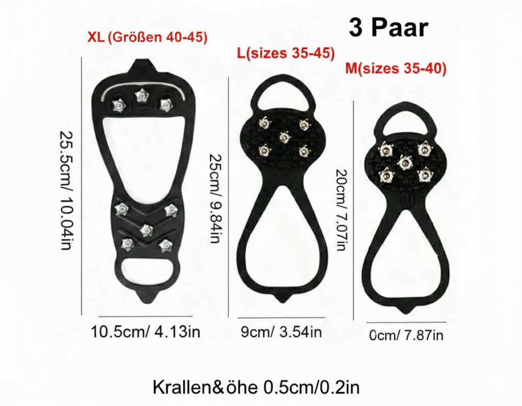 Diese Anti-Rutsch Schuhüberzüge mit Spikes bieten zuverlässigen Grip auf vereisten und verschneiten Untergründen – ideal für den Winter.