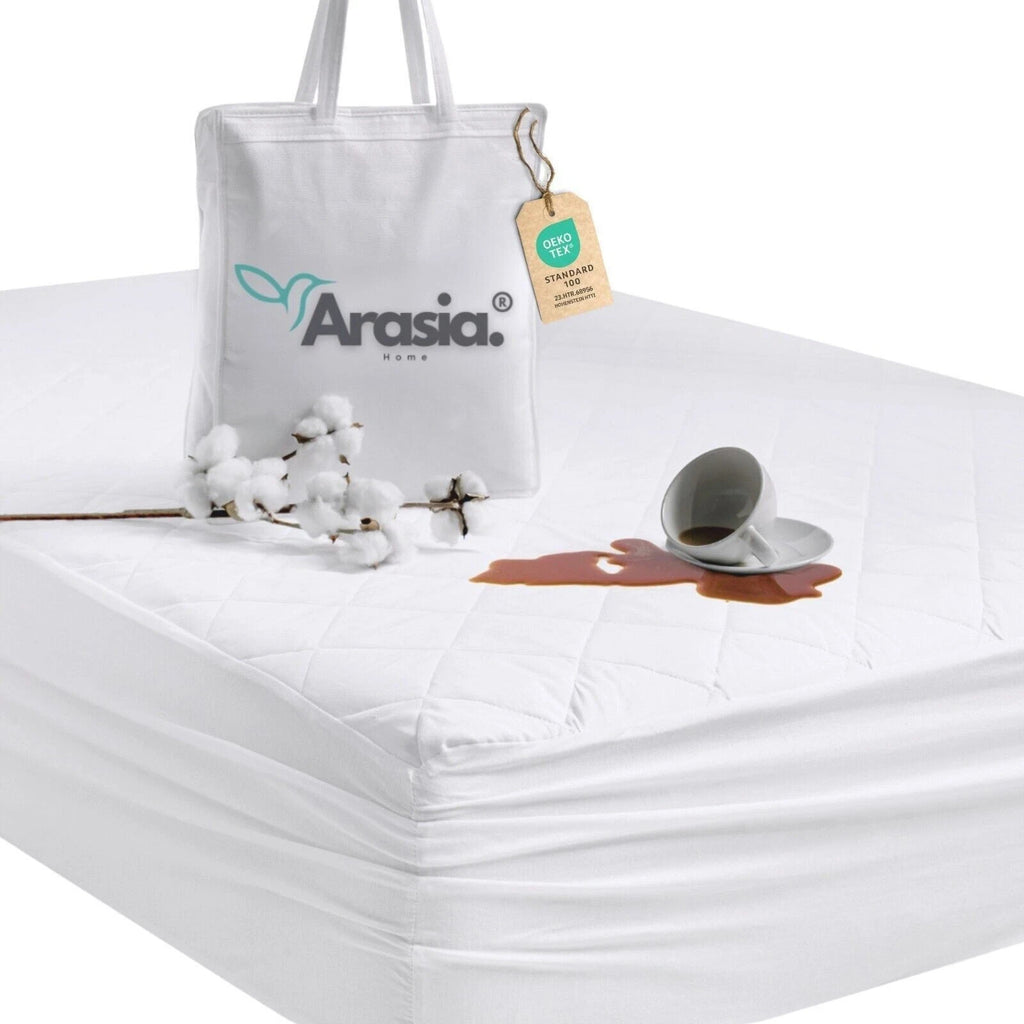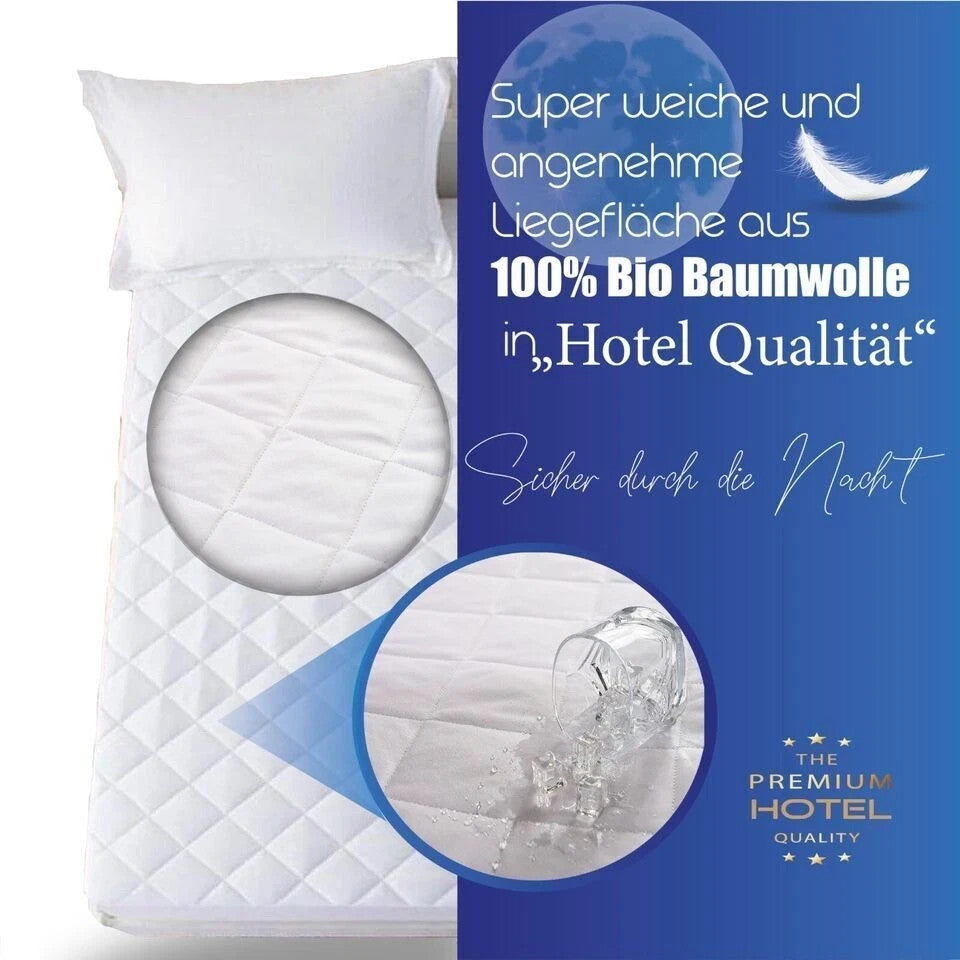 Matratzenschutz & Spannbettlaken:Der Matratzenschoner aus 100% Baumwolle schützt Ihre Matratze vor Flüssigkeiten, Schweiß und Milben und dient gleichzeitig als Spannbettlaken.