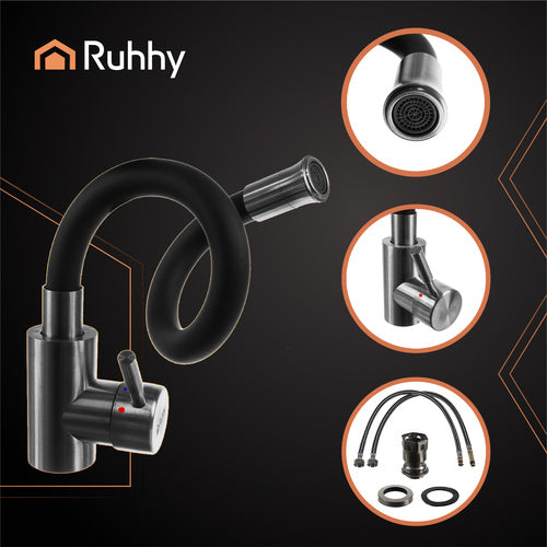 ✅ Elegantes Design – gebürsteter Edelstahl mit schwarzem Flex-Auslauf