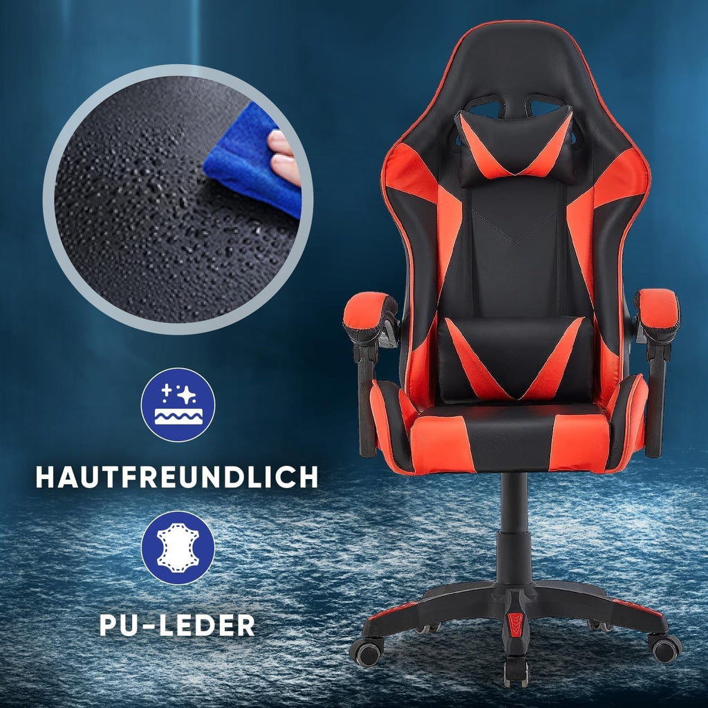 Gaming Stuhl Rot Ergonomisch Bürostuhl mit Fußstütze Drehstuhl
