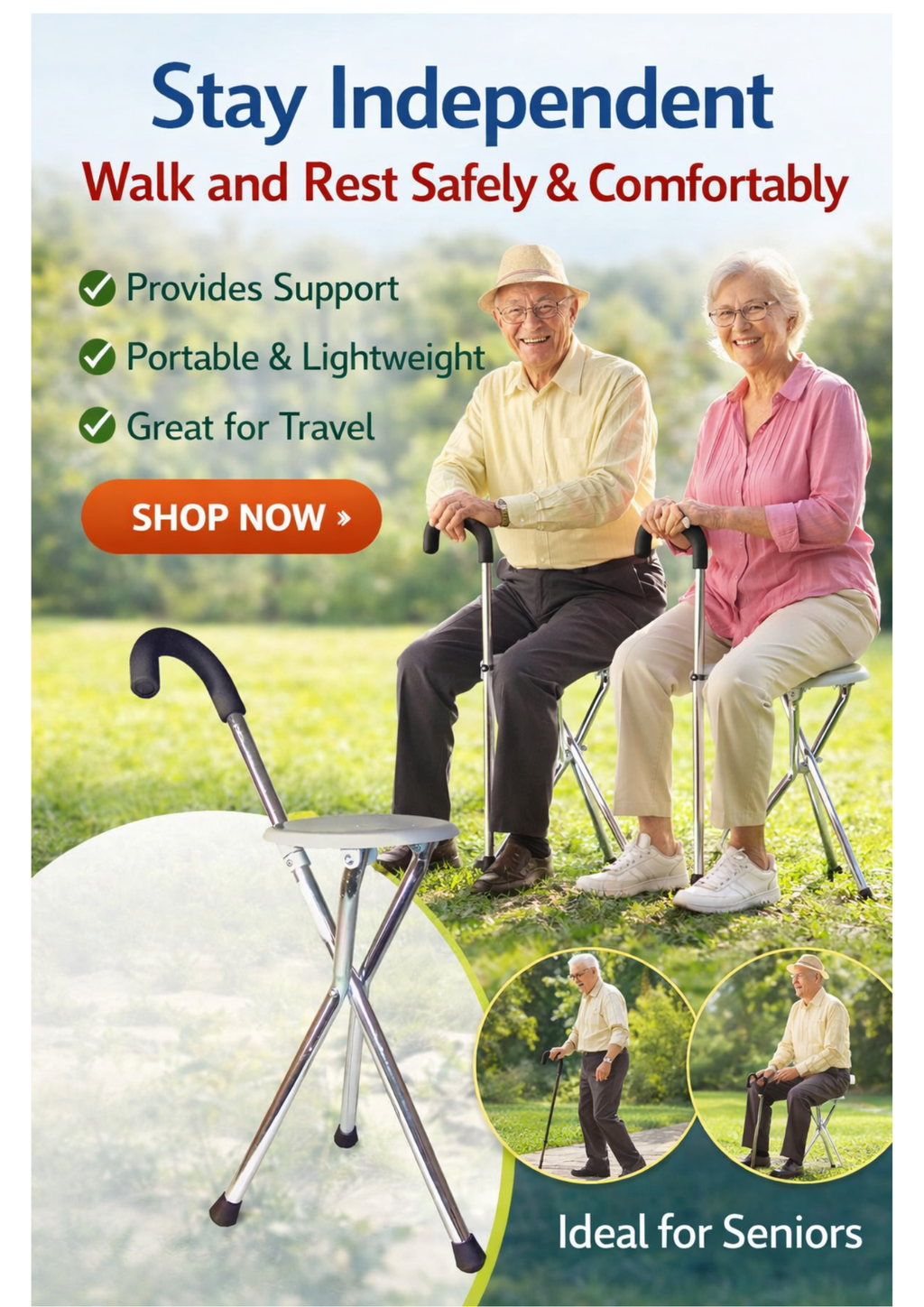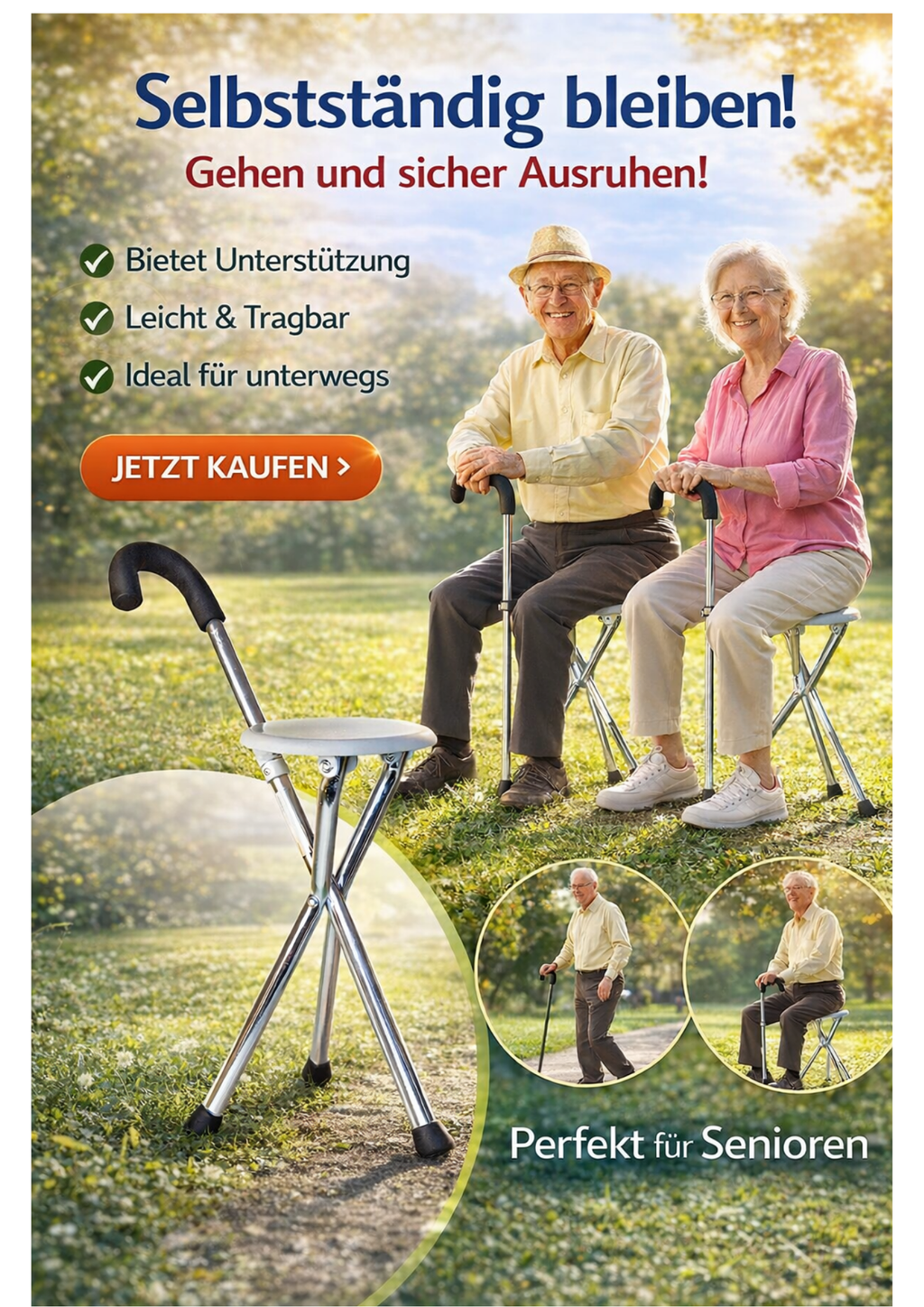 ✔ Gehstock und Sitz in einem