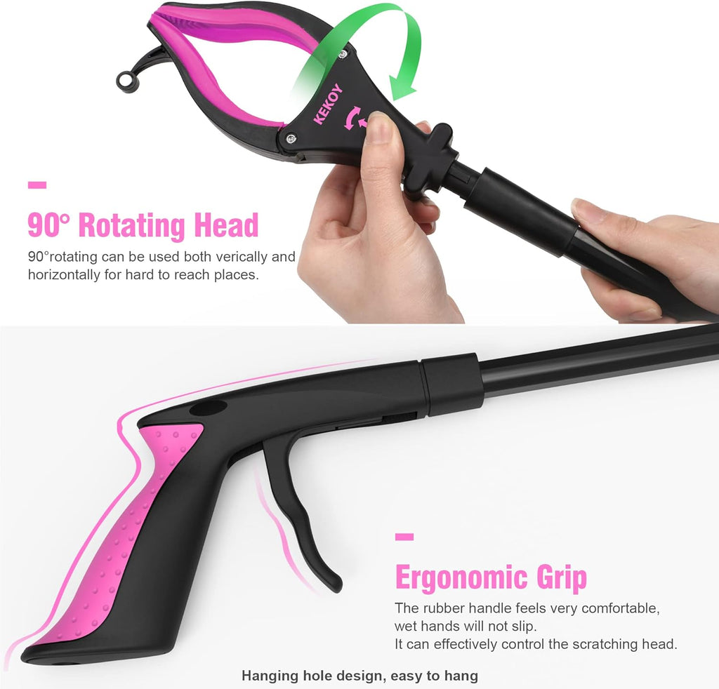 【Durable & Portable】 This reacher for seniors is made of lightweight aluminum and plastic. 10 cm wide jaws allow the reacher to grip objects of all shapes. A non-slip mat prevents objects from falling. The 90° rotatable head can be used vertically and horizontally in hard-to-reach places, such as narrow gaps. Note: 10 cm is the maximum distance it can support, and 2 lb is the maximum weight it can support.