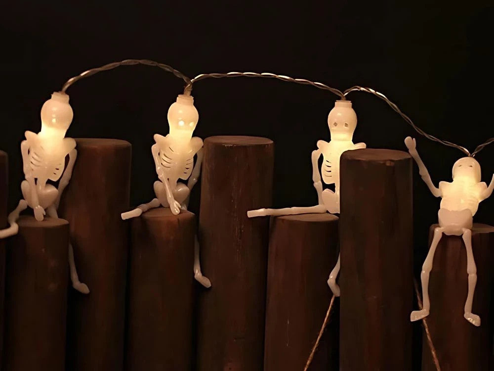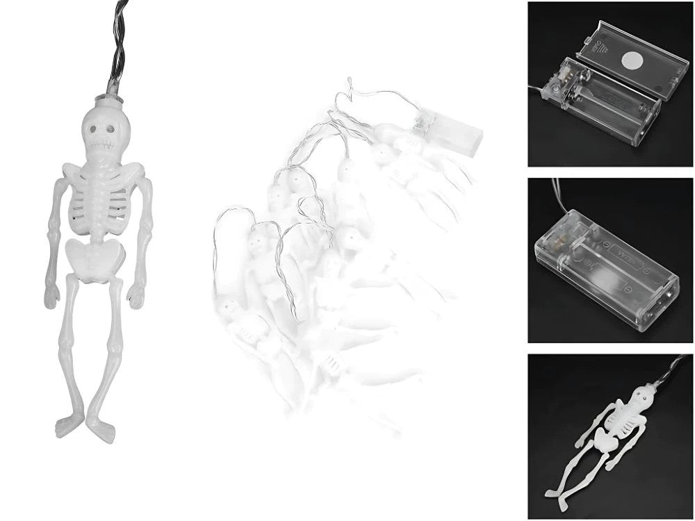 💀 Halloween LED Skelett Lichterkette – 2m mit 10 Figuren 🎃