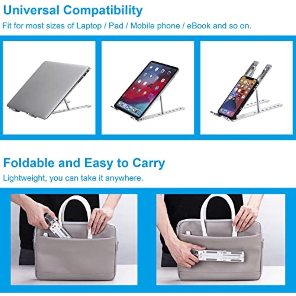 Höhenverstellbarer Aluminium Laptopständer – 7 Stufen, Faltbar, Belüftet & Rutschfest – Silber
