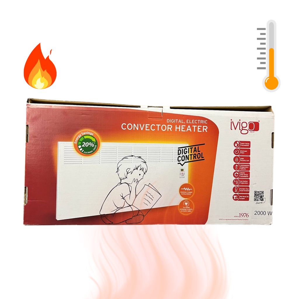 **iVigo Elektrische Panel-Konvektor-Heizung 2000 Watt Weiß EPK4590E20B – Digitaler Heizkörper mit Konstanter Temperaturregelung**