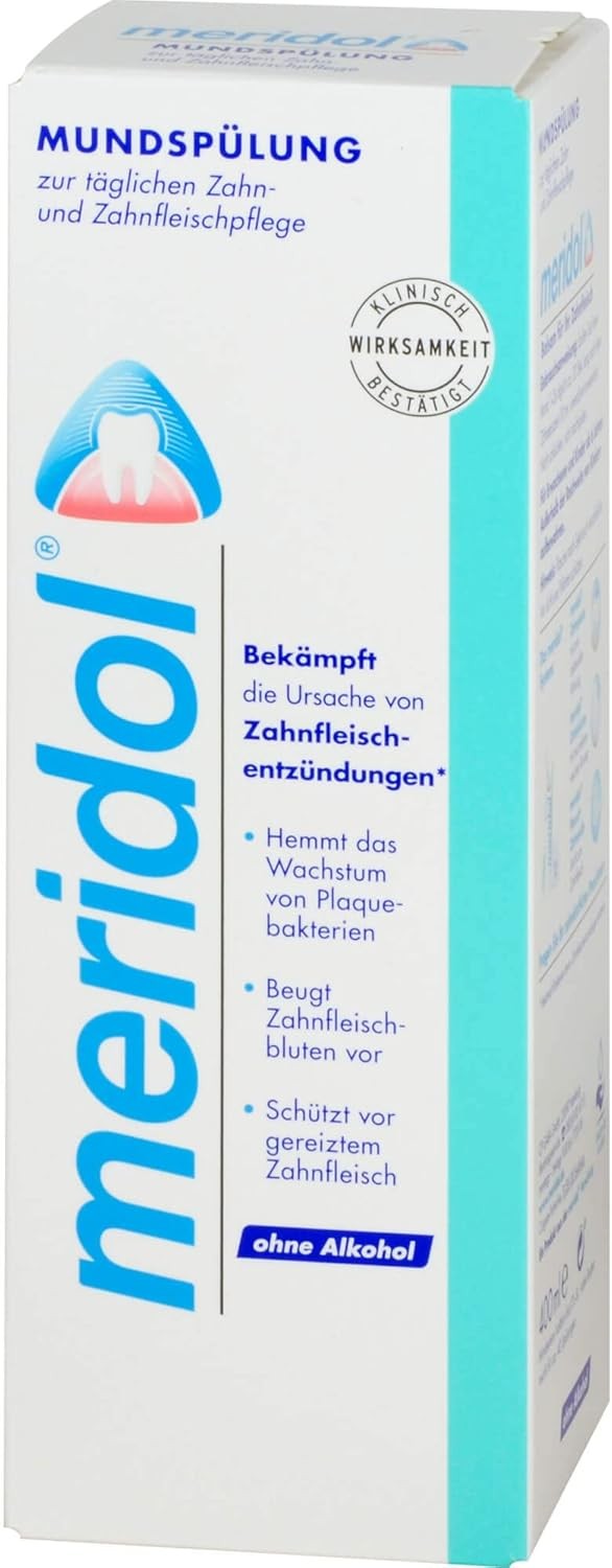 Schützen Sie Ihr Zahnfleisch und Ihre Zähne mit der meridol Zahnfleischschutz Mundspülung. Diese Zahnfleischschutz Mundspülung wurde von Experten entwickelt, um die Ursache* von Zahnfleischbluten und -entzündungen zu bekämpfen, und zwar schnell***. Die Mundspülung hilft auch vor wiederholtem Auftreten der Entzündung zu schützen* und hat eine wirksame 2-fach Wirkformel, die eine schnelle*** und lang anhaltende antibakterielle Wirkung** bietet. Die 2-fach Wirkformel dieser Zahnfleischschutz Mundspülung besteht aus Zink und Aminfluorid, zwei wichtigen Inhaltsstoffen, die sich sofort im Mund verteilen und zusammen eine wirksame antibakterielle Wirkung* entfalten. Sie wirken schnell** gegen Plaquebakterien, die Hauptursache für Zahnfleischprobleme, und unterstützen die natürliche Abwehr des Zahnfleisches, um es vor dem erneuten Wachstum von Plaquebakterien zu schützen. Diese Zahnfleisch-Mundspülung hilft nicht nur, die Zähne sauber und das Zahnfleisch gesund zu halten, sie verursacht auch keine Verfärbungen und schützt vor: • Zahnfleischentzündungen • Zahnfleischbluten • Zahnfleischrückgang • Parodontitis • Plaquebildung • Karies Für den optimalen Schutz verwenden Sie die meridol Zahnfleischschutz Mundspülung als Teil Ihrer täglichen Mund- und Zahnpflege mit der meridol Zahnfleischschutz Zahnpasta, der meridol Zahnfleischschutz Zahnbürste und der meridol Zahnseide. *Bekämpft Plaquebakterien, bevor Zahnfleischbluten entsteht, bei regelmäßiger Anwendung. **Bekämpft Plaquebakterien, bevor Zahnfleischprobleme entstehen, „schnell“ und "lang anhaltend" in Labortests bestätigt.