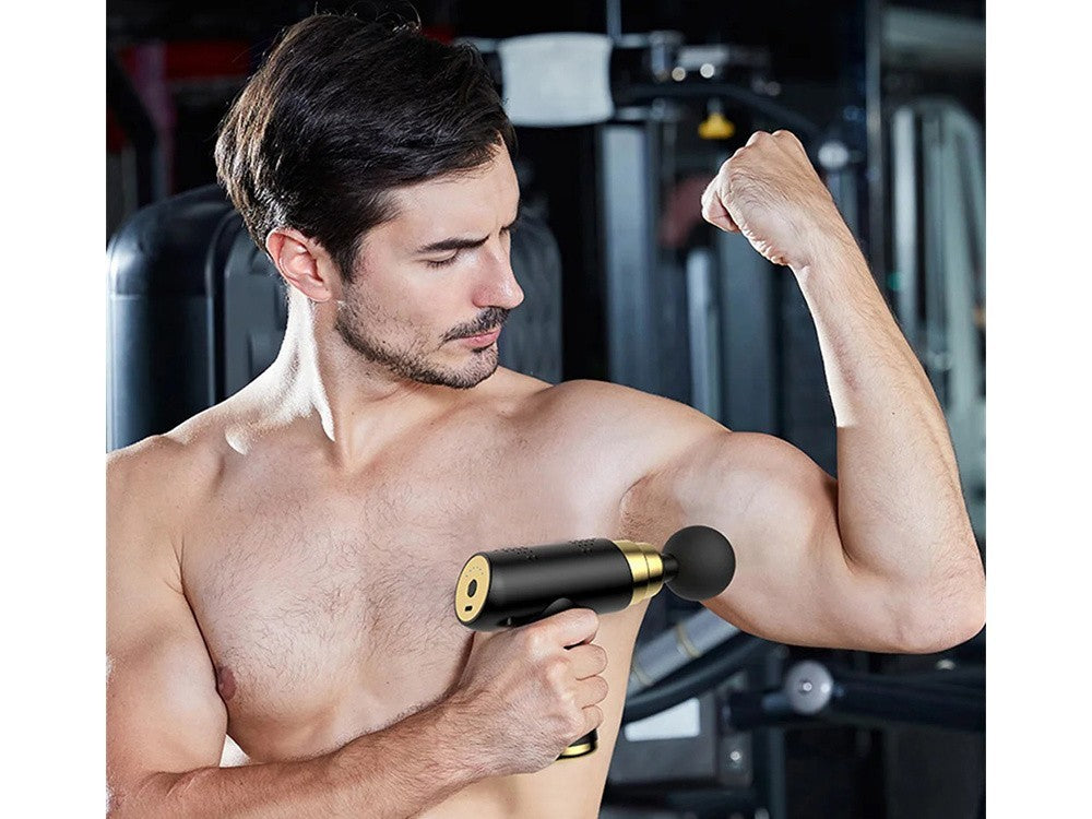 Die Massagepistole verfügt über 6 einstellbare Massageintensitäten, die je nach Bedarf angepasst werden können. Dadurch kann die Massage sanft oder intensiver durchgeführt werden.