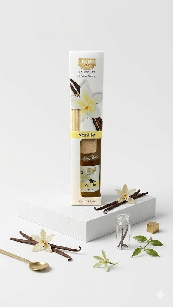 Der Raumduft 30ml mit Duftstäbchen Diffuser sorgt für eine angenehme und frische Atmosphäre in Ihrem Zuhause. Wählen Sie Ihren Lieblingsduft aus den Varianten Lavendel, Vanille, Ocean oder Zimt und genießen Sie eine gleichmäßige Duftverteilung – ideal für Wohnräume, Büro oder Bad.