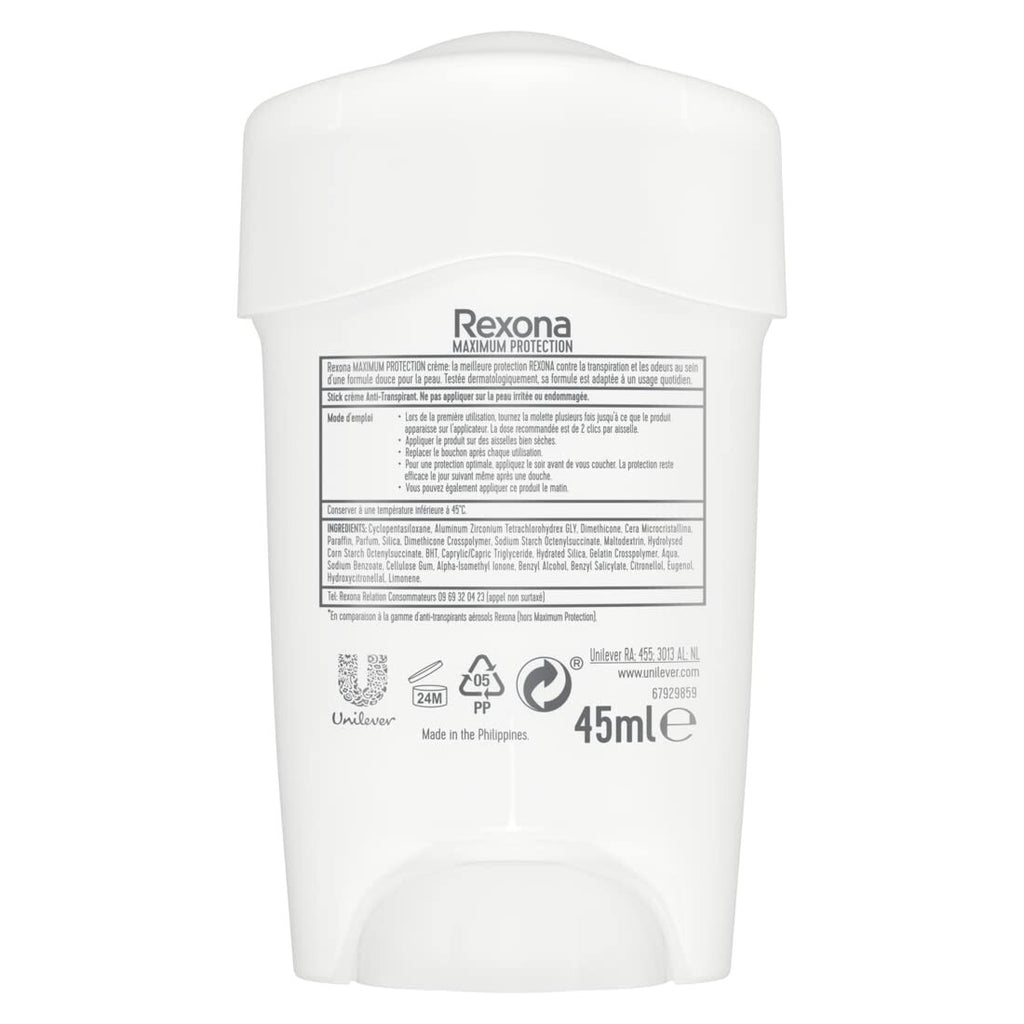 Rexona Maximum Protection Deo Creme Confidence Anti Transpirant mit 3x Schutz bei Stress, Hitze & Bewegung 96H extremer Schutz 45 ml