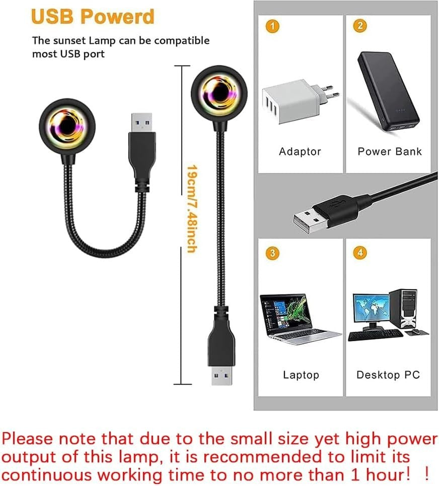 Die RGB LED Sunset Lampe ist eine moderne Lichtlösung für kreative Raumgestaltung und stimmungsvolle Beleuchtung. Mit bis zu 16 Millionen Farben lässt sich die Lampe individuell anpassen und eignet sich perfekt als Hintergrundbeleuchtung für Fotos, Videos oder als dekoratives Nachtlicht im Wohnraum.