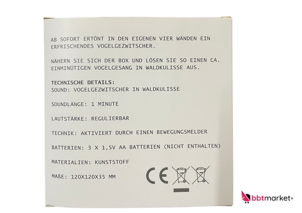 Diese Soundbox spielt beruhigendes Vogelgezwitscher ab, sobald der Bewegungssensor aktiviert wird. Perfekt für Badezimmer, Gäste-WC, Flur oder Büro.