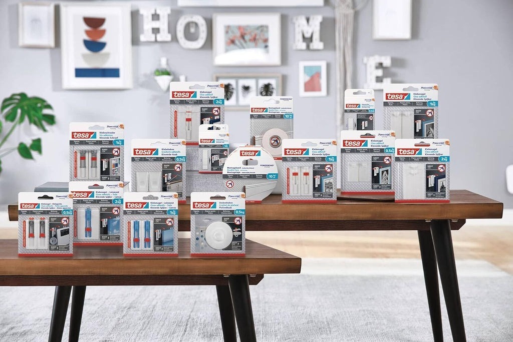 Starke Klebekraft: Die bewährte tesa Powerstrips Technologie bietet auch auf strukturierten und empfindlichen Oberflächen eine Reißfestigkeit von bis zu 1,0 kg pro Streifen
