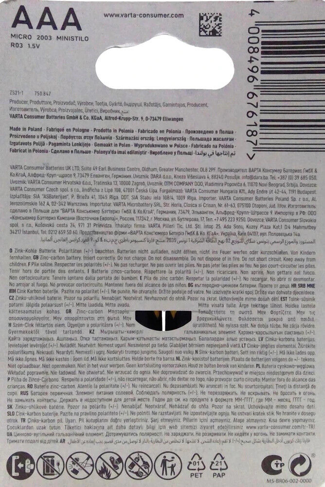 4 x Varta Superlife Heavy Duty Micro AAA LR03 Batterie Zink Carbon MN2400 1,5V