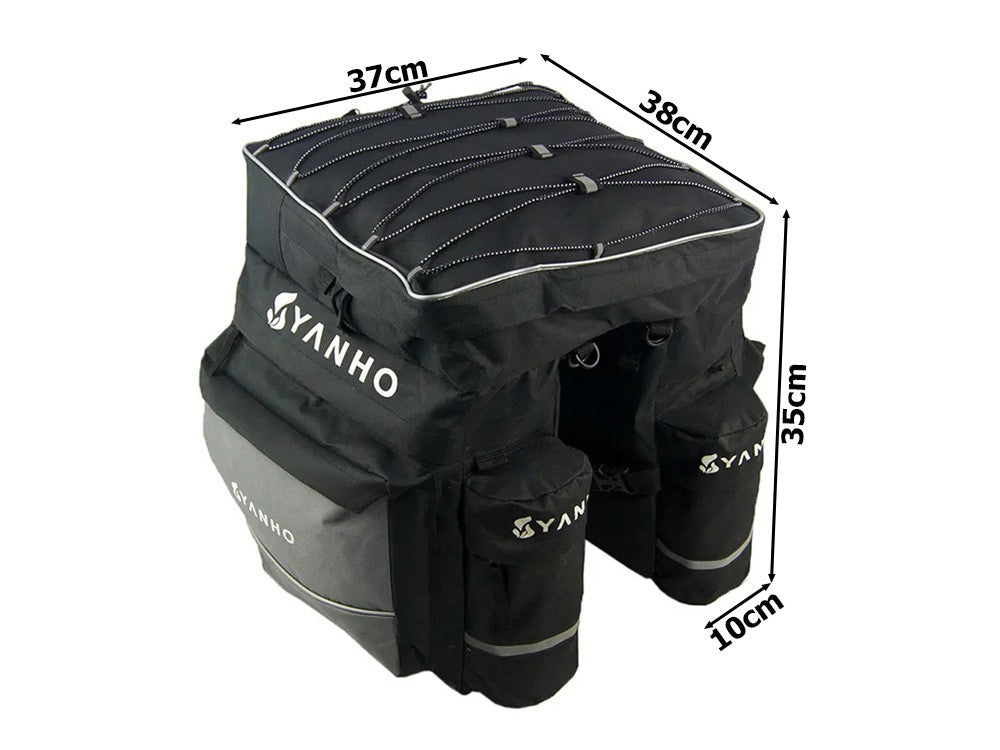 60L Fahrrad Gepäckträgertasche–Wasserdicht, 3Hauptfächer, Reflektoren & Regenhül