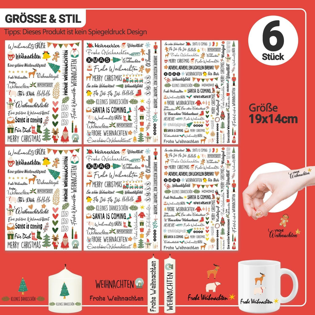 6x Weihnachts Kerzen Tattoo Set 200+ Motive Wassertransfer Deko