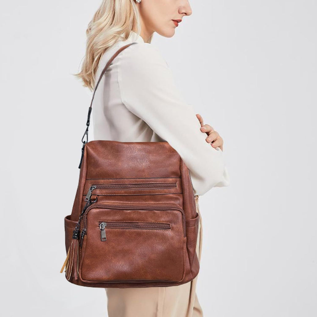 Damen-Rucksack veganem Leder Groß Stylisch Frauen Designer Schultertasche Reiserucksack mit Quaste Cityrucksack Rucksacktasche