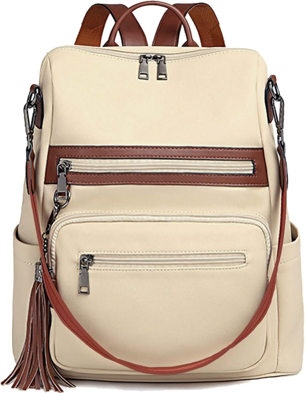Material de alta calidad: el bolso de mochila de viajes para mujeres está hecho de cuero vegano suave de alta calidad con artesanía de primera clase. Emparejado con elegante hardware de tono de pistola y linda borla, lo que hace que este bolso de mochila sea más de moda y duradero.