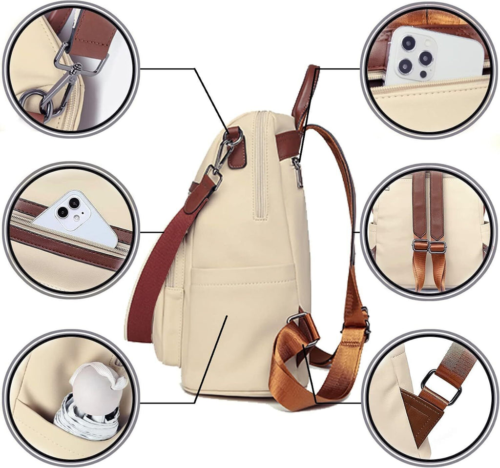Dimensión y gran capacidad - (L) 34 x (h) 33 x (w) 15 c'm, peso: 0.8kg. El bolso de mochila para mujeres es espacioso para que lleve las cosas que desea, como libros A4, iPad, teléfono celular, paraguas, laptop de 13.3 pulgadas, botella de agua, maquillaje, pañales para bebés y sus artículos diarios. Ven con las correas de hombro de lona desmontables, puede usar este bolso de mochila como un bolso de hombro de moda.
