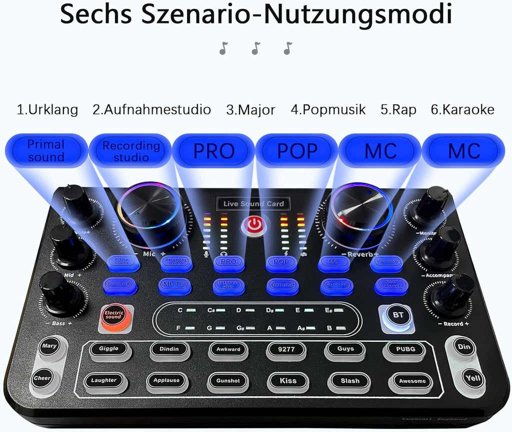 Kann für Gitarrenaufnahme, Podcasting, YouTube, Tiktok Live-Übertragung, PC, Karaoke, Stimme usw. verwendet werden