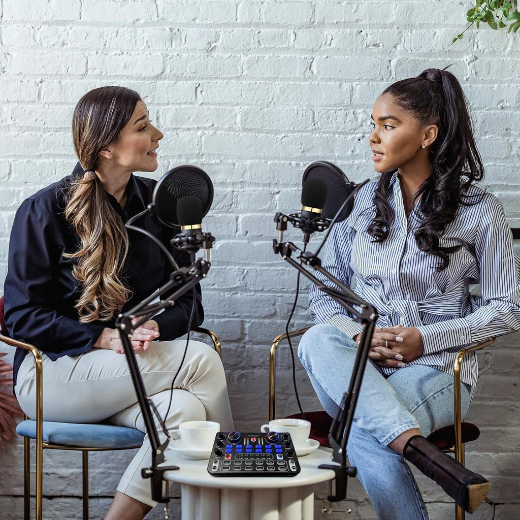 DJ Controller Set Soundkarte mit Mikrofon für PC Karaoke Podcast Streaming