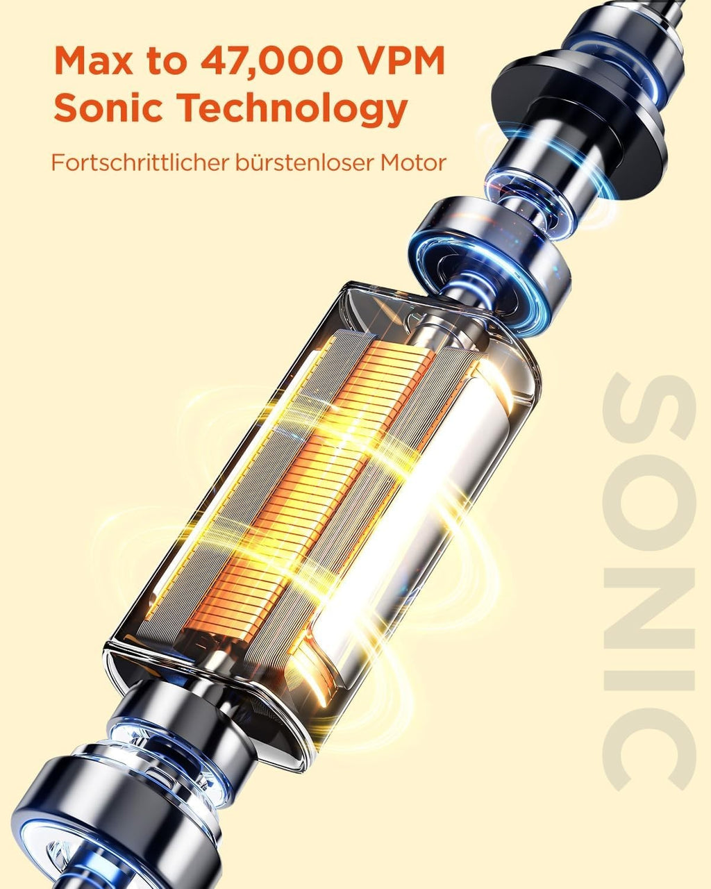 • 47.000 Vibrationen/Minute – entfernt bis zu 125% mehr Plaque