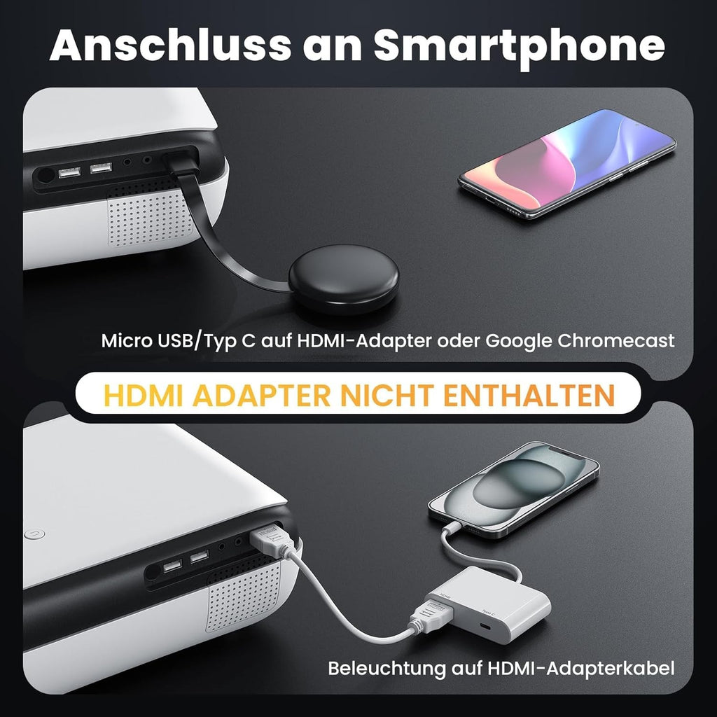 Full HD 1080P Beamer 4K Bluetooth Heimkino Mini Projektor 9500 Lumen