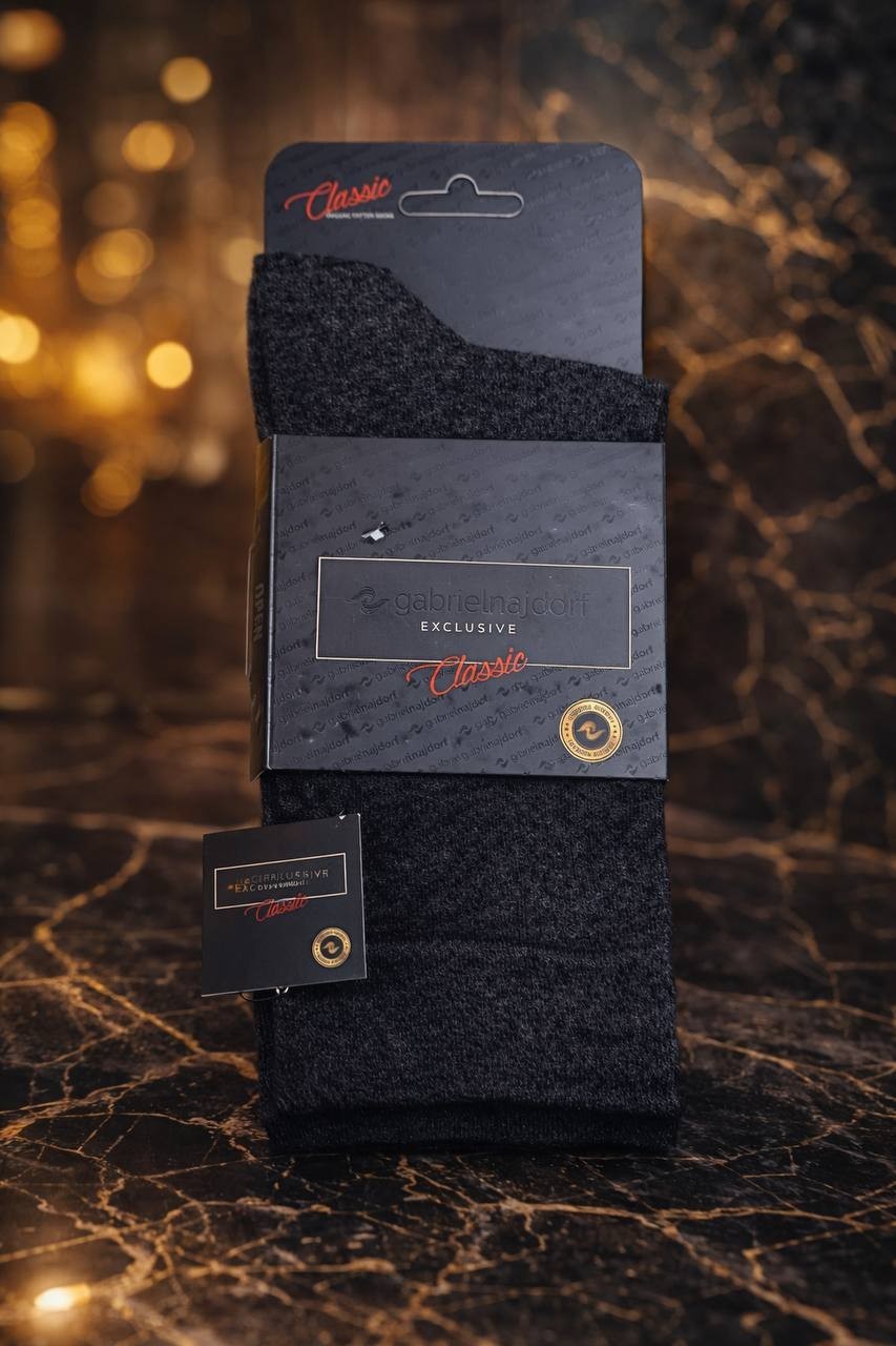 Diese Angora Wollsocken in Schwarz und Grau bieten angenehme Wärme und hohen Tragekomfort.