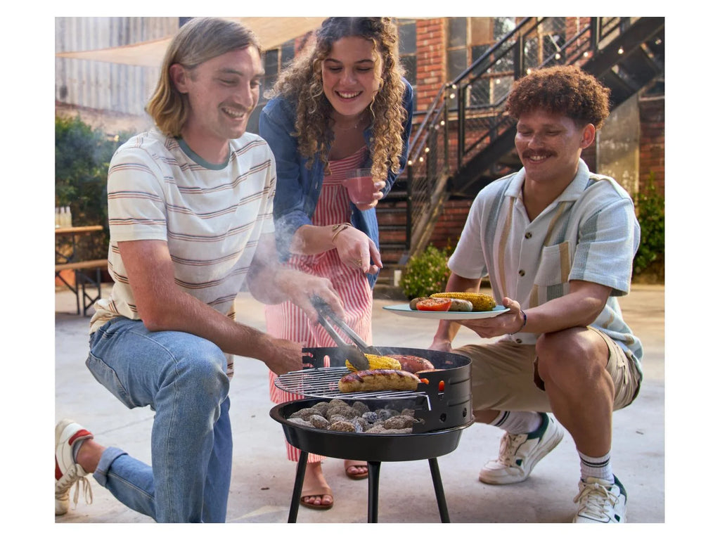 Praktischer Holzkohlegrill für Garten, Terrasse oder Camping. Kompakte Bauweise mit stabiler Konstruktion – ideal für gemütliche Grillabende.