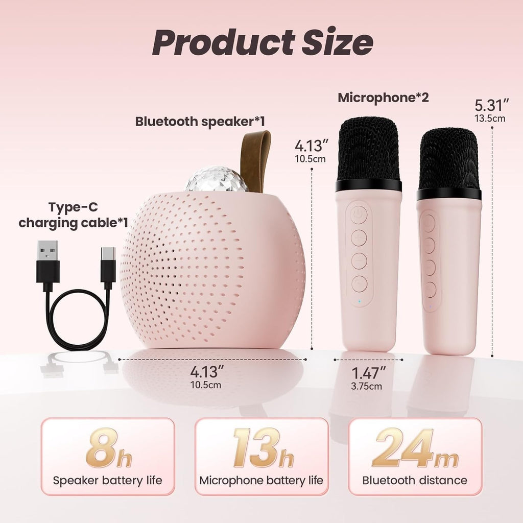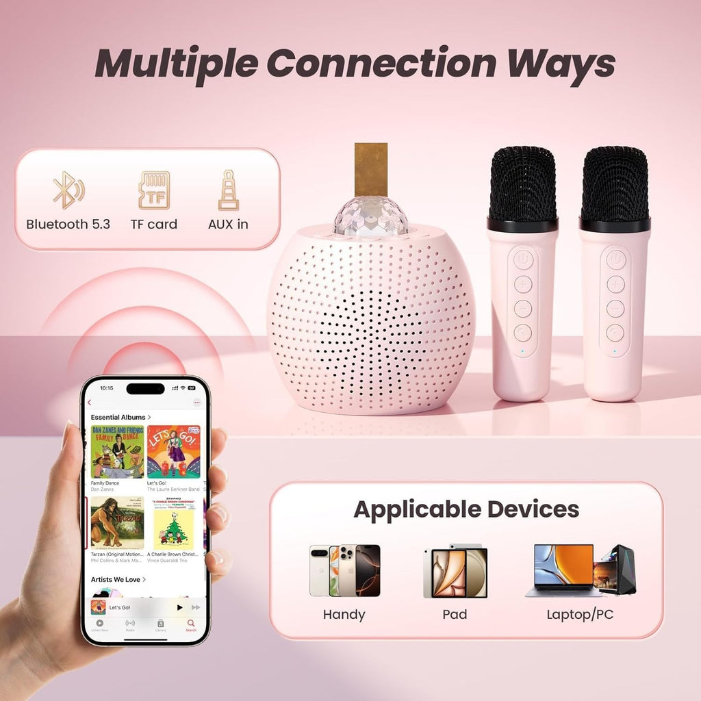 Karaoke Maschine Kinder 🎤 Bluetooth Lautsprecher 2 Mikrofone LED Rosa