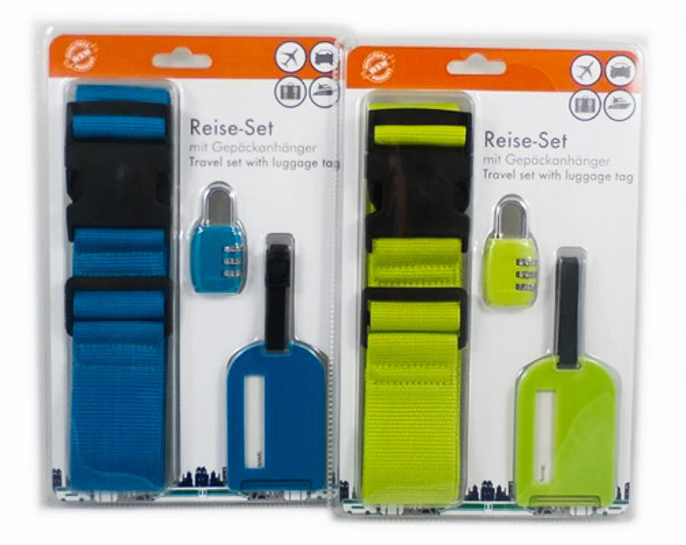 Dieses kompakte 3-teilige Reiseset ist der ideale Begleiter für Koffer, Trolleys und Reisetaschen.