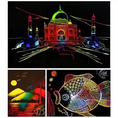 Kratzbuch Set 10 Blätter 20x14cm mit Holzstift Malen Farb Scratch Buch 🎨✨