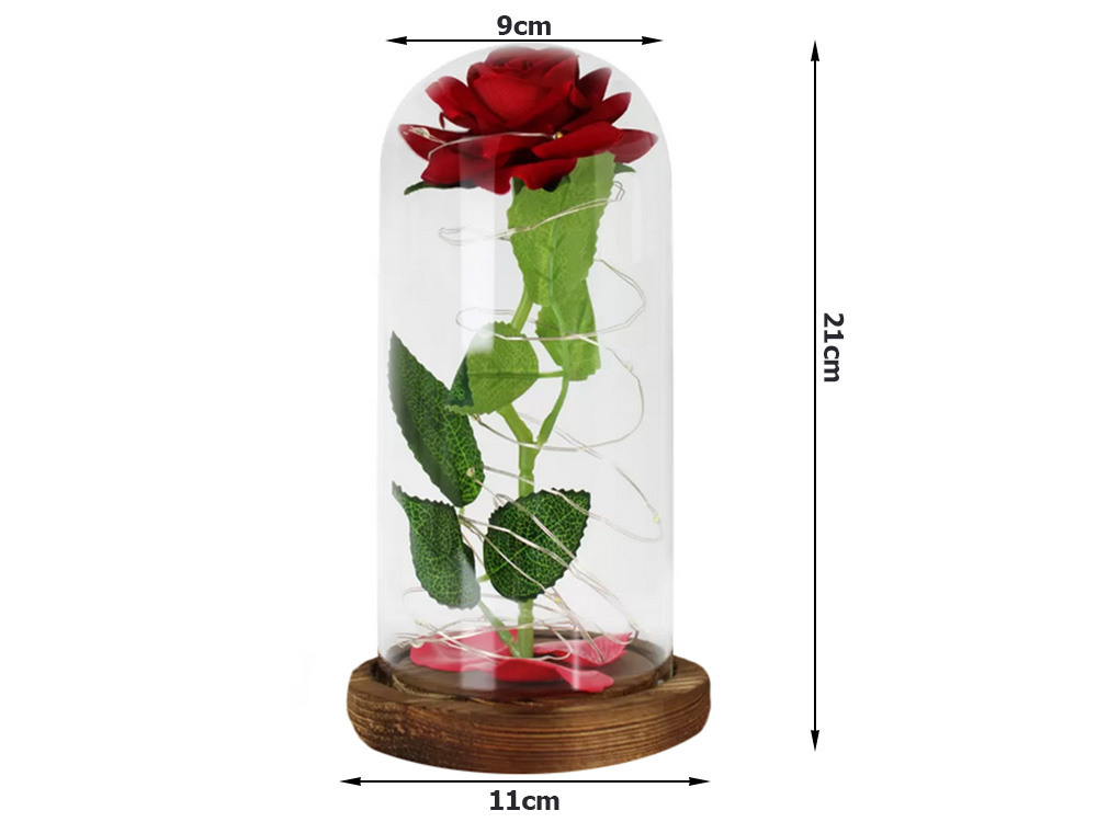 Ewige Rose aus Glas, rot, LED-Geschenk, leuchtend für einen Anlass für Frauen. Technische Daten: Produktcode: 26107 Material: Kunststoff, Glas, Holz Künstliche Rose mit LED-Beleuchtung. Stromversorgung: 3 x AAA (nicht im Lieferumfang enthalten). Perfekt für ein Geschenk. Farbe : rot. Eleganter Styroporschutz für den Glaslampenschirm. Maße: Höhe: 21 cm. 11 cm Schirmdurchmesser: 9 cm Das Set beinhaltet: Brandneue ewige Rose in einem LED-Lampenschirm aus Glas Originale, elegante Box