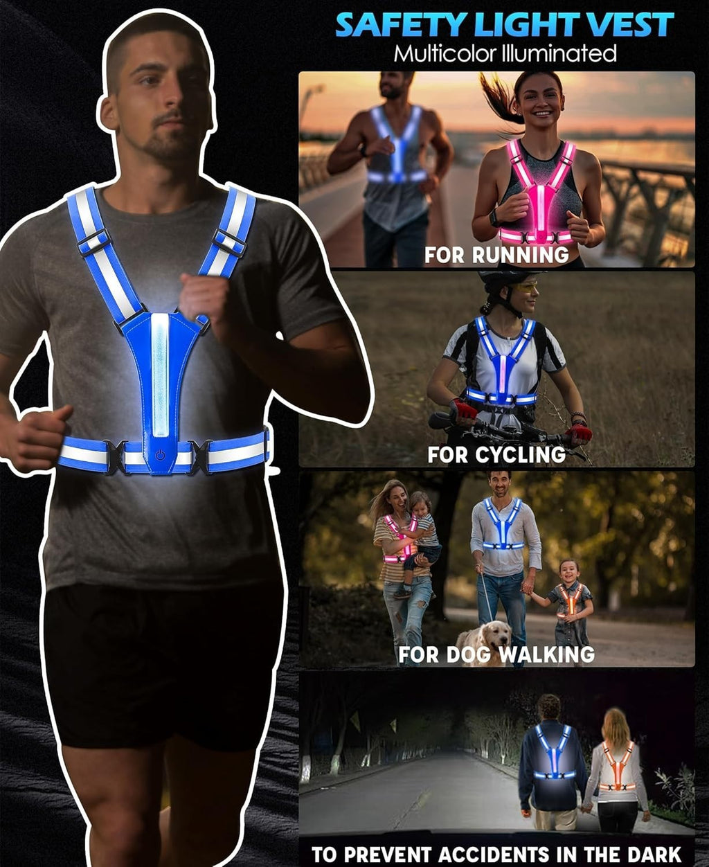 💡 Erhöhte Sichtbarkeit: Ultrahelle LED-Leuchten + 360° reflektierende Streifen = perfekte Sicht im Dunkeln 🌙