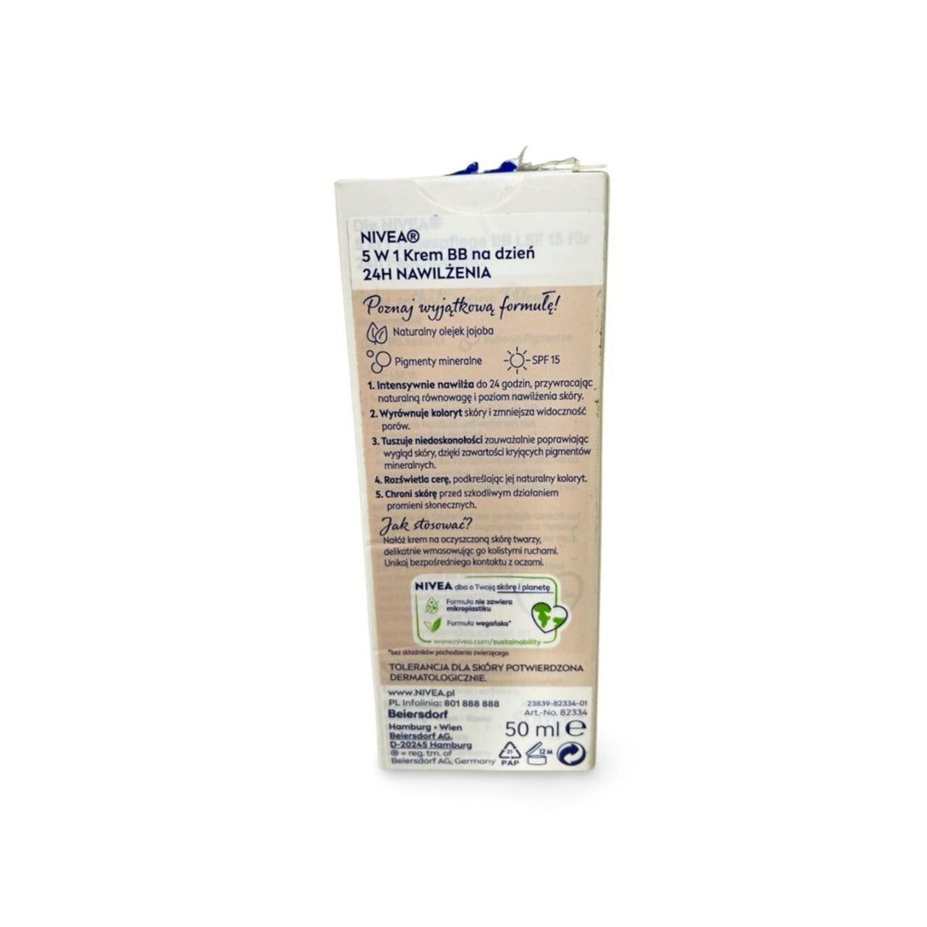 NIVEA 5 IN 1 Tagespflege BB 24h Feuchtigkeit LSF 15, getönte Tagescreme für mittlere bis dunkle Hauttypen, Gesichtscreme mit Bio Jojoba-Öl und Make-Up Pigmenten