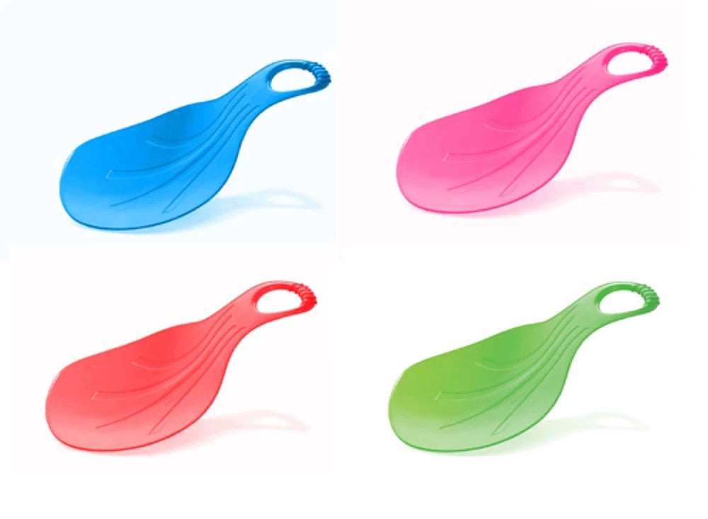Gefertigt aus robustem Kunststoff, bietet der Schneerutscher eine stabile Basis für rasante Abfahrten. Der integrierte Griff sorgt für besseren Halt und mehr Kontrolle während der Fahrt.
