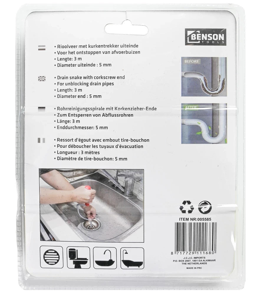 Diese 3 m lange Rohrreinigungsspirale entfernt zuverlässig Fett- und Schmutzablagerungen aus Abflussrohren und Siphons, z. B. an Spülsteinen.
