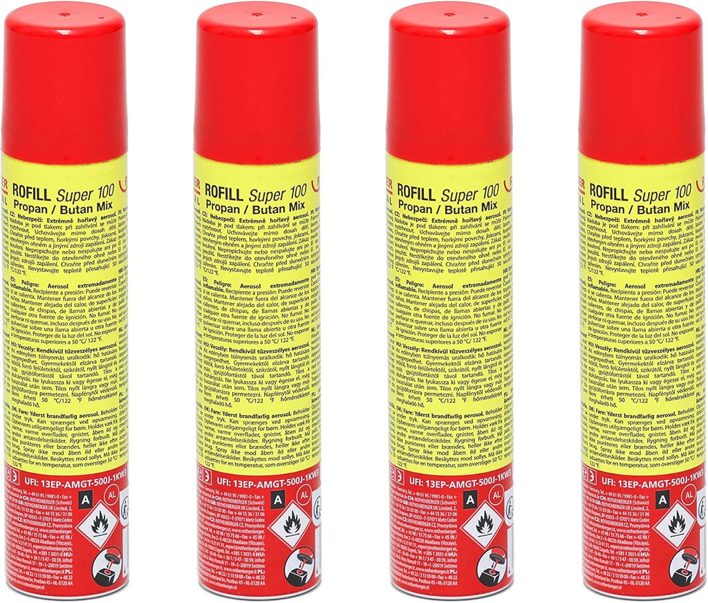 SET: 4x RoFill Super 100 ml / 56 g Brenngas-Kartusche