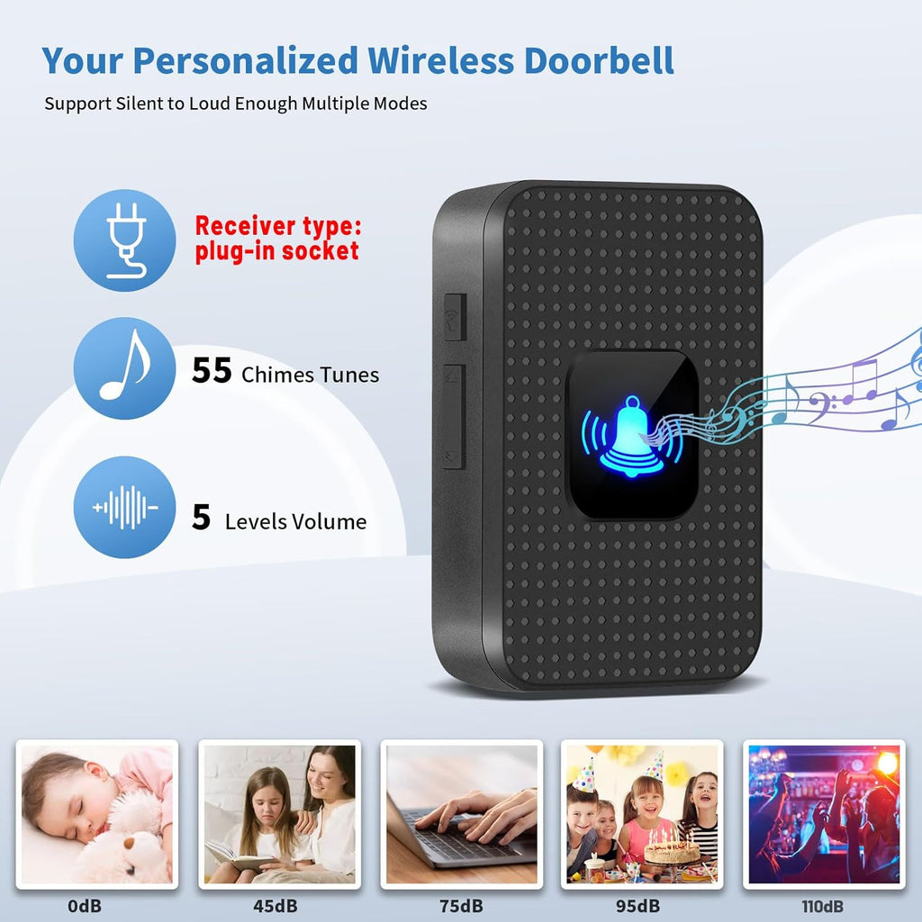 Diese kabellose Funkklingel bietet eine beeindruckende Reichweite von bis zu 300 m, perfekt für Haus, Garten, Büro oder Werkstatt.