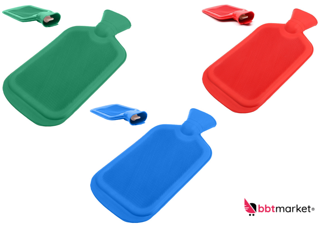 Wärmflasche 2L – 2000ml Gummi Heizkissen Fußwärmer Wasserbefüllung Zufallsfarbe